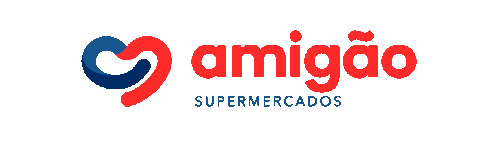 Animated sticker for Amigão Supermercados, featuring 'Link na Bio' call to action for social media profiles.