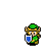 Pixel art Link from The Legend of Zelda holding a blue shield, in classic 8-bit style.