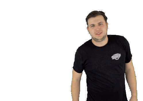 A man from Linke Soep, wearing a black t-shirt, enthusiastically dancing and gesturing.