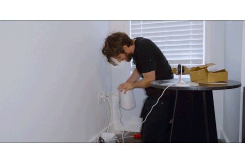 a man in a black shirt is working on a white item