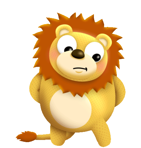 An animated lion character looking unsure, shrugging its shoulders with a 'meh' expression.