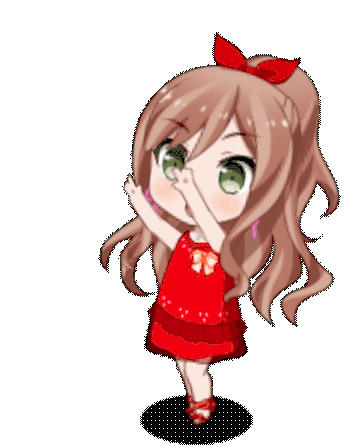a cartoon girl in a red dress with a red bow on her hair