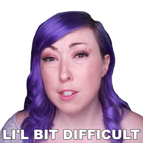 Ashni, with vibrant purple hair, expresses a 'Li'l Bit Difficult' sentiment with a thoughtful and slightly frustrated look.