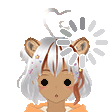 Little Lion Gamer, a cartoon girl with white hair and bear ears, looks confused with a 'processing' animation around her head.