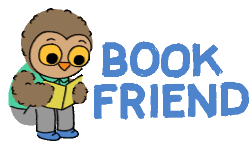 An adorable owl from Littlest Friends, created by Timothy Winchester, sits and reads a book with 'BOOK FRIEND' text.