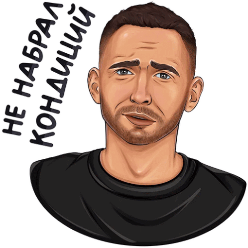 a cartoon drawing of a man with a beard and the words " не набрал кондиции "