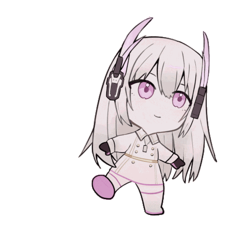 Chibi Liv from Punishing Gray Raven animated sticker, showing her walking with a cute expression and long white hair.
