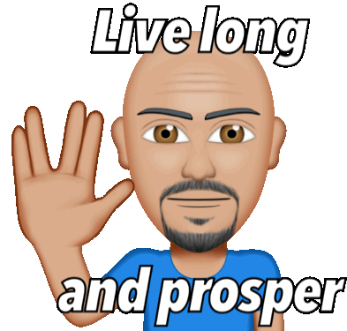 A bald man performs the iconic 'Live Long And Prosper' gesture, then a thumbs up, with the phrase displayed.