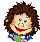 A cheerful Living Puppets cartoon boy with spiky hair winks and smiles, perfect for sharing a secret or playful moment.