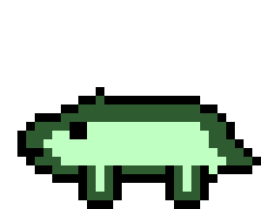 A charming animated sticker featuring a cute green cartoon lizard with big eyes, blinking slowly and looking around.