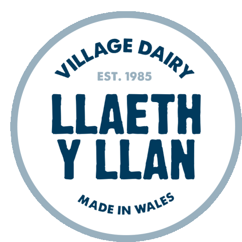 The animated circular logo for Llaeth Y Llan Village Dairy, established in 1985 and made in Wales.