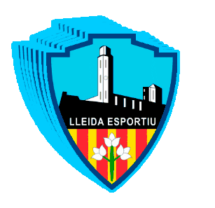 Animated sticker of the Lleida Esportiu football club logo, featuring a blue shield with a landmark building and Catalan flag colors.