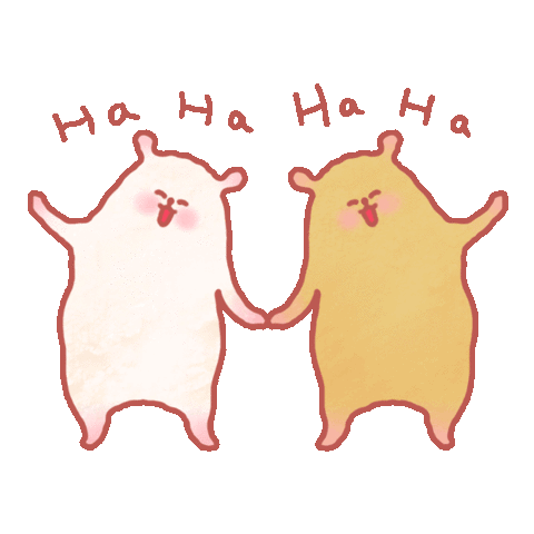 Two cute cartoon hamsters holding hands and laughing with 'HA HA HA HA' text above them.