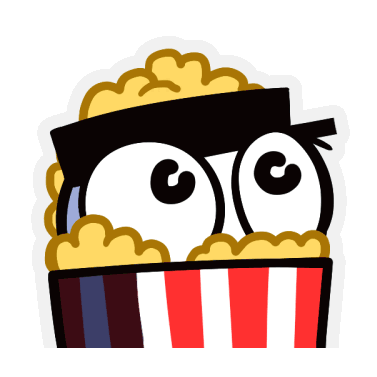 Loadlurk character peeks from a popcorn box, startled by a movie, then hides again, perfect for watching films.