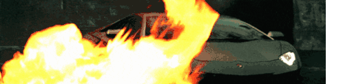 A dramatic animated sticker showing a grey Lamborghini, identified as Lockdown Transformers, engulfed in intense flames.