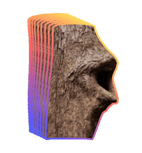 An animated log or tree stump with a vibrant, wavy rainbow outline, suggesting a 'poggers' internet meme.