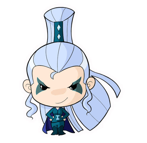 Chibi Icy from Winx Club laughing with "AH!" text bubbles, expressing amusement and playful mockery.