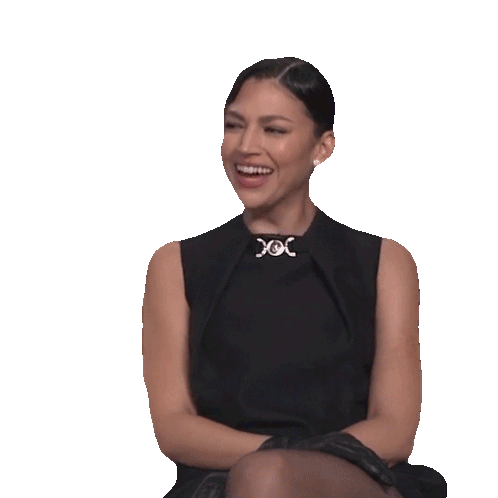 Úrsula Corberó laughing heartily with her head tilted back, wearing a black top and gloves. Her genuine joy is infectious.