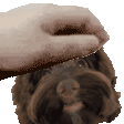 A cute brown cockapoo named Lola receives a gentle head pat, showing affection and happiness in this animated sticker.