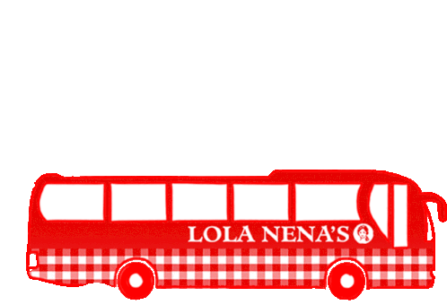 Red bus featuring the 'Lola Nena's' brand, known for its Triple Cheese Donuts, with a cheerful checkered pattern.