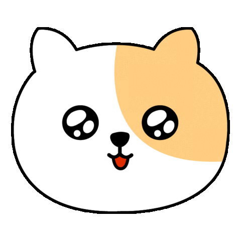 A cute, round cat face with big eyes and a small tongue, showing a sweet, longing expression.