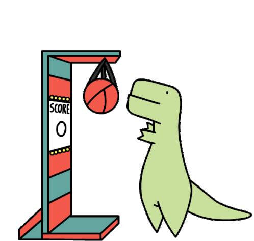 Loof And Timmy Trex, a cute dinosaur, is determined to punch the bag on a score game.