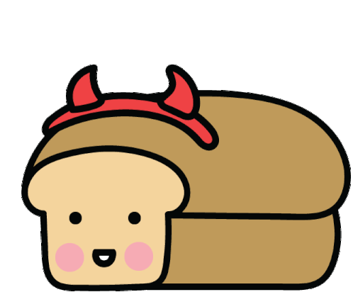 Loof, the adorable loaf of bread, sports a cute devil horn headband, blushing cheeks, and a happy smile, making for a charming sticker.