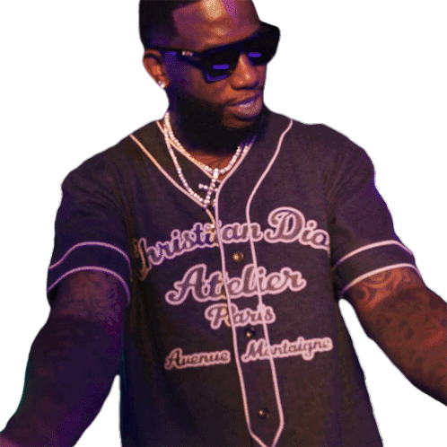 Gucci Mane proudly displays his tattooed arms, gesturing to 'Look At My Arms' with confidence.