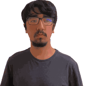 a pixelated image of a man wearing glasses and a grey shirt