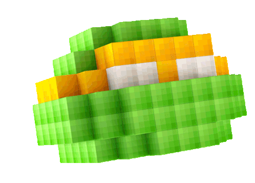 Michaelangelo, also known as Mikey from Teenage Mutant Ninja Turtles, looking around by turning his head left and right.