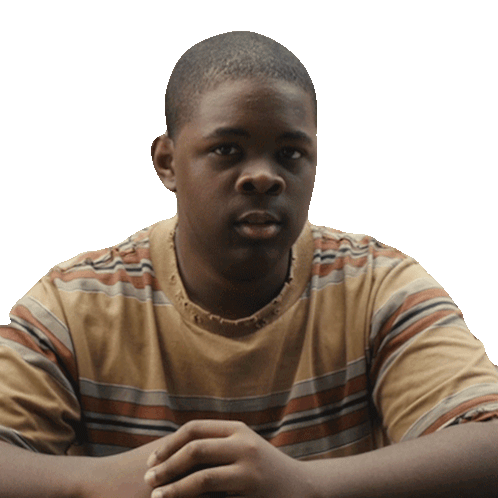 Young George Foreman looking intently at the viewer with a serious expression, hands clasped.