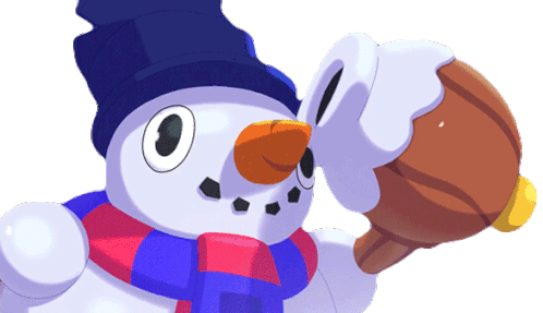 Snowman Tick from Brawl Stars, wearing a blue hat and scarf, observes something with a curious expression.