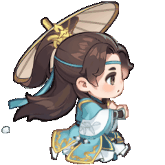 Lop Xioling Modo's chibi Xioling character, dressed in a blue robe, walking with a traditional umbrella.