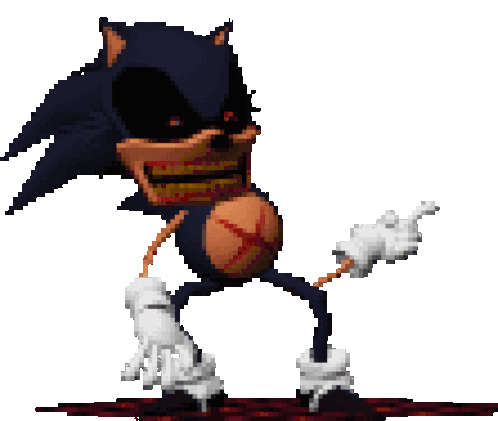 Animated sticker featuring Lord X from FNF in a left pose, a pixel art character from the Sonic.exe mod.