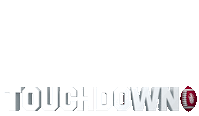 Animated 'TOUCHDOWN' text with a football, celebrating a score for the Los Angeles Rams.