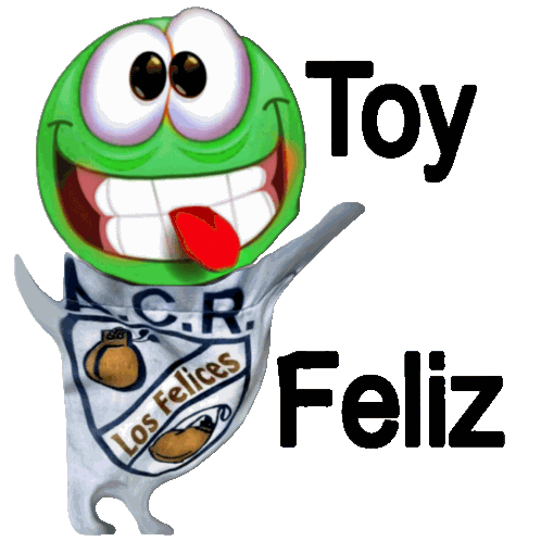 a smiley face with the words toy feliz below it