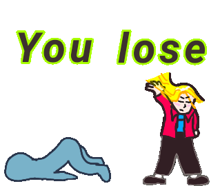 A dynamic animated sticker depicting a cartoon battle scene with characters fighting, culminating in a 'You lose' message.