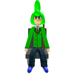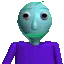 Losky Dave from Loskys Basics and Loskys Lucky Lessons in a pixelated wheelchair, holding a stick.