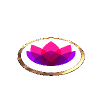 A vibrant animated sticker featuring a pink and purple lotus-like design with a shimmering gold border, representing Lotus Crypto XPI.