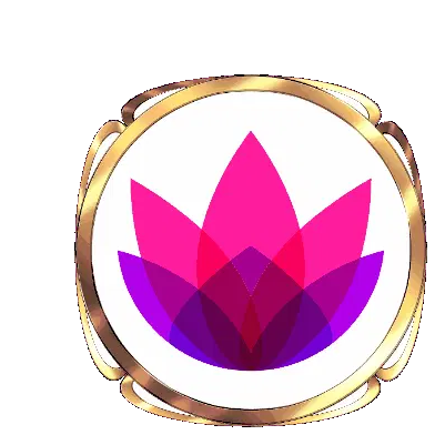 An animated sticker featuring the vibrant Lotus Xpi logo, a stylized pink and purple lotus within a golden frame.