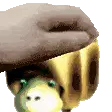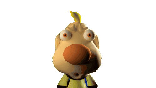 Louie from Pikmin is featured in this animated sticker, with a dramatic zoom into his wide, orange eye.