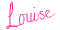 The name Louise is animated, being written in a flowing, cursive pink script on a clean white background, resembling a signature.