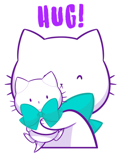 Bubble Kittea, the adorable white cat, shares a warm, loving hug, perfect for expressing affection to friends.