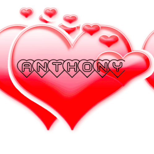 A glowing red heart with the name 'ANTHONY' spelled out in smaller hearts, surrounded by floating little hearts.