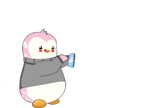 A cute Pudgy Penguin sends love with a phone, displaying the message 'I couldn't ignore you even if I wanted to'.
