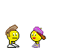 Pixel art emoticons express love. A cupid shoots an arrow, leading to 'I like you' and 'I love you' declarations.