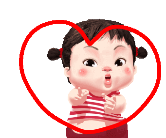 An adorable animated sticker of a cute cartoon girl with pigtails, holding a heart and then blowing a kiss, surrounded by a big red heart outline.