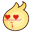 A cute yellow blob-like character with glowing red heart eyes, expressing love and affection in an animated sticker.