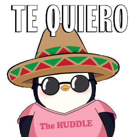 A cute penguin wearing a sombrero and sunglasses expresses love, culminating in a large heart appearing. Perfect for showing affection.