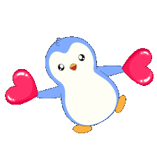 An adorable blue and white cartoon penguin happily holding two vibrant red hearts, perfect for expressing love.